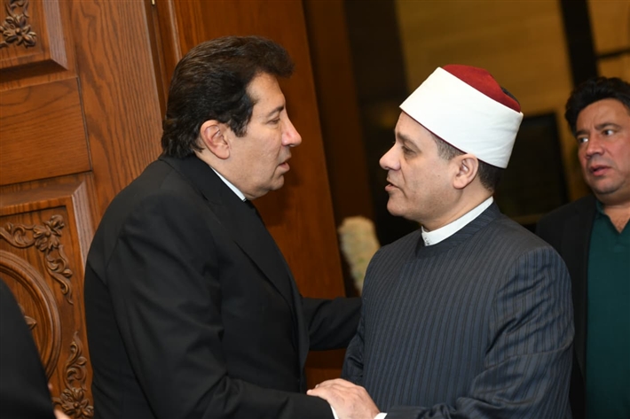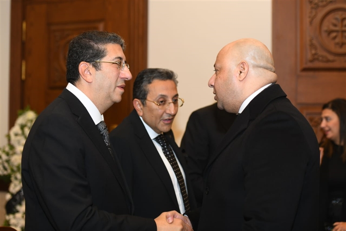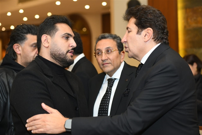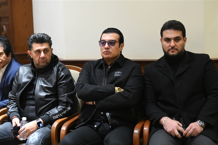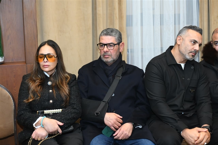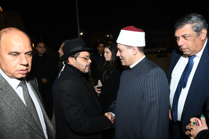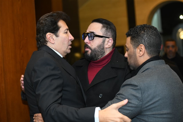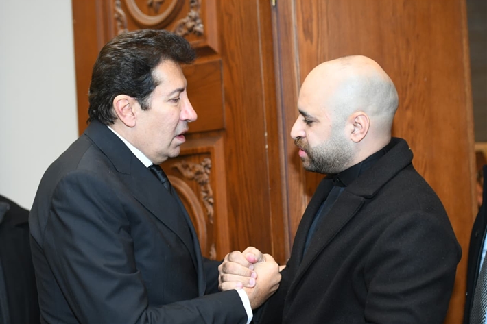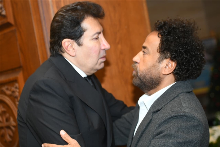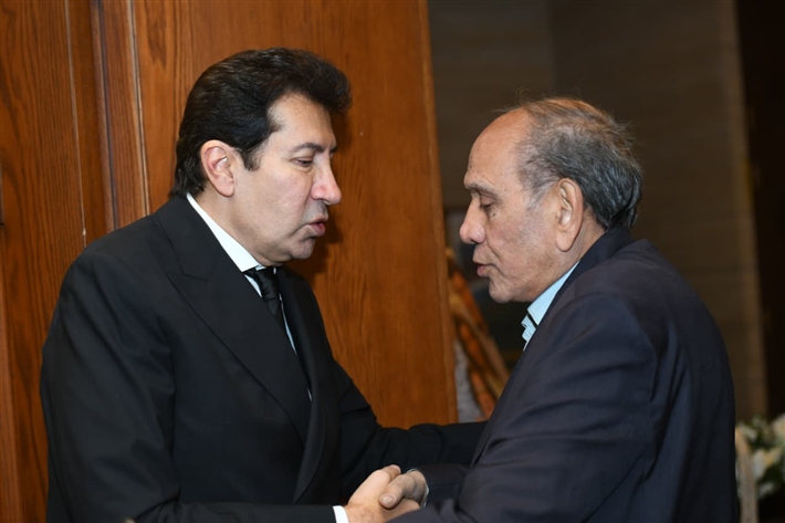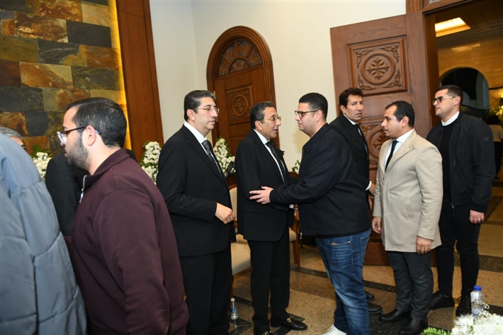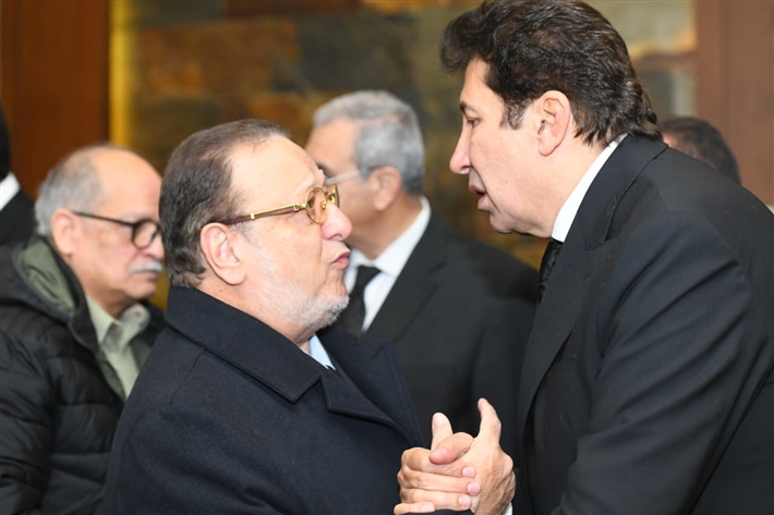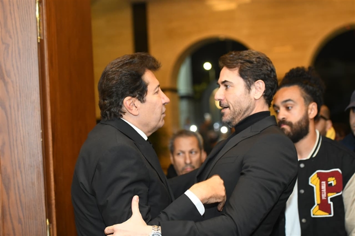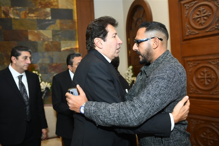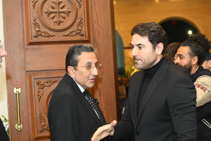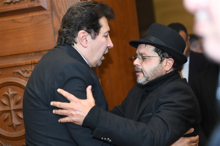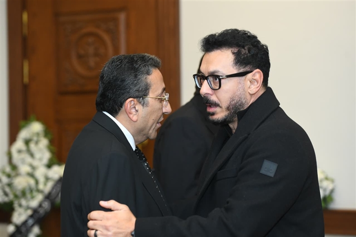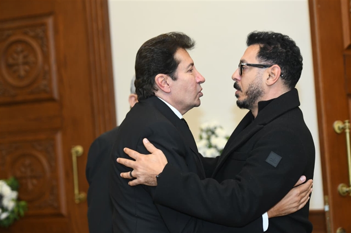 أحمد عز ومحمد هنيدي وأكرم حسني في عزاء والدة هاني رمزي