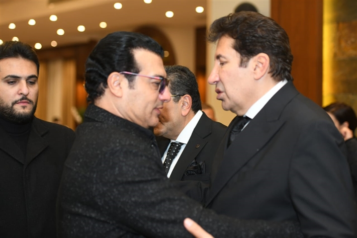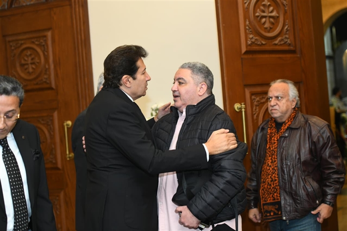 أحمد عز ومحمد هنيدي وأكرم حسني من بينهم ... نجوم الفن والإعلام في عزاء والدة هاني رمزي