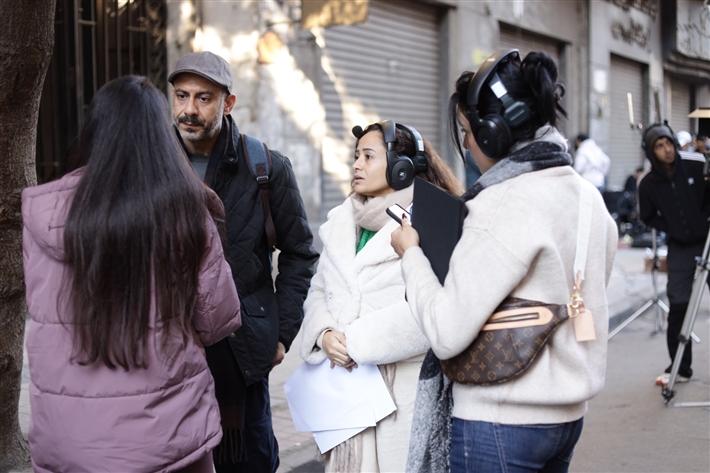 محمد فراج والمخرجة ياسمين أحمد كامل من كواليس مسلسل أب ولكن