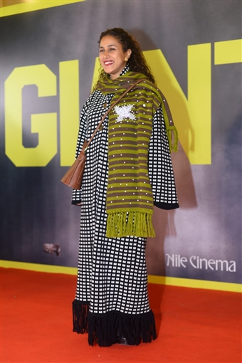 منة عرفة بفستان برتقالي ساتان في أحدث ظهور