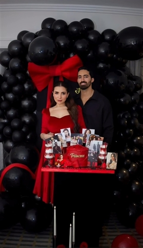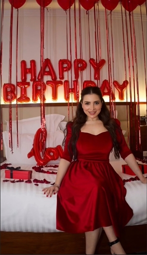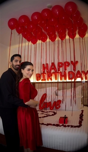 في أجواء رومانسية وتورتة عليها صورها … مي عز الدين تحتفل بعيد ميلادها مع زوجها