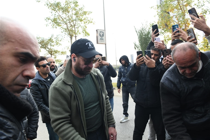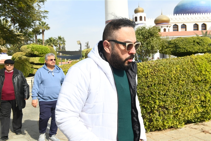 عمرو عبد العزيز في جنازة والدة الفنان نضال الشافعي