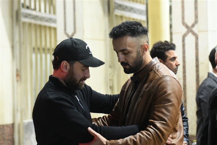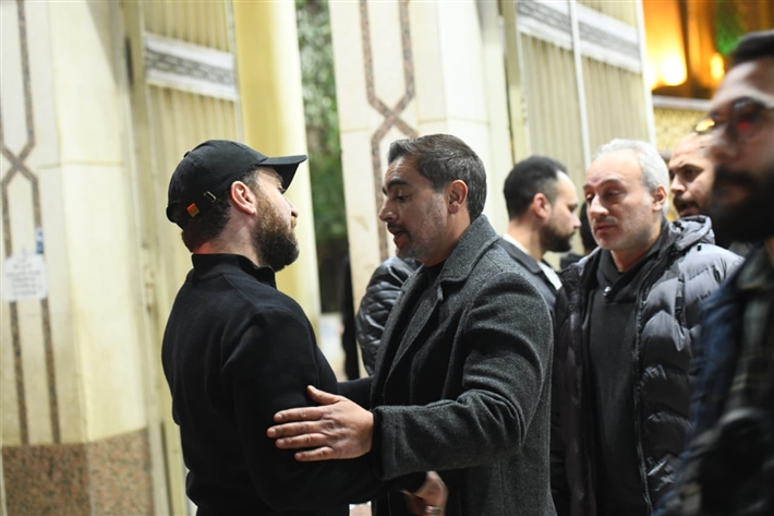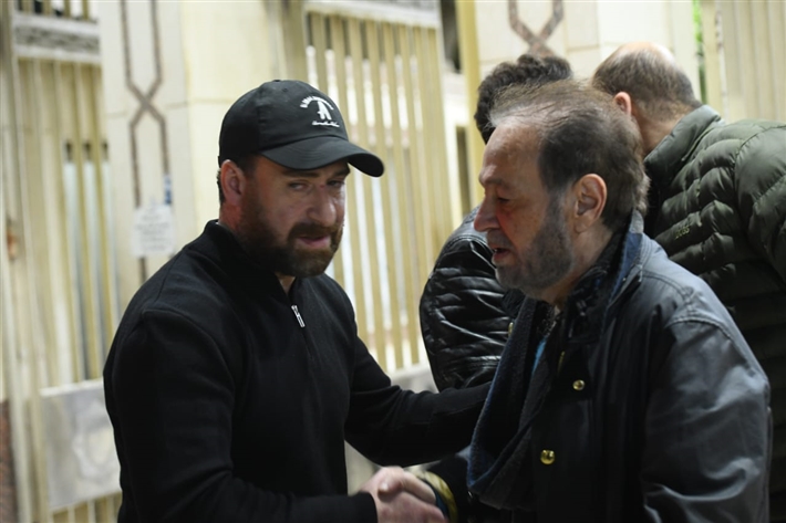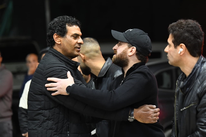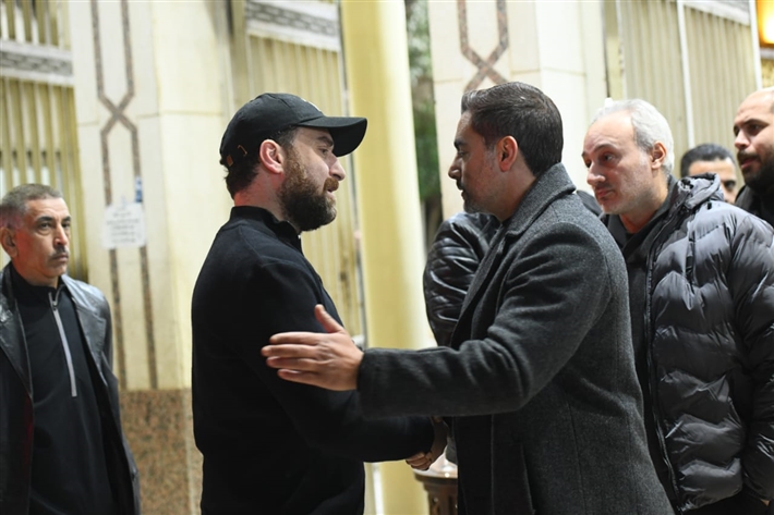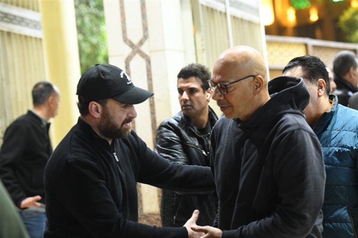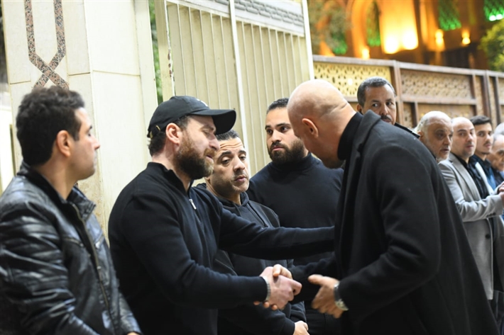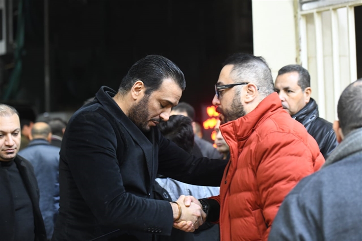 أحمد السقا وهاني سلامة وأحمد زاهر في عزاء والدة نضال الشافعي