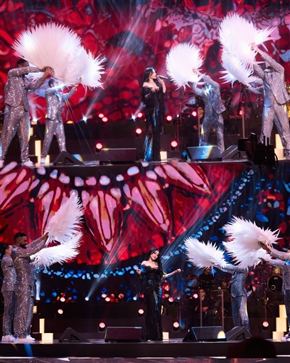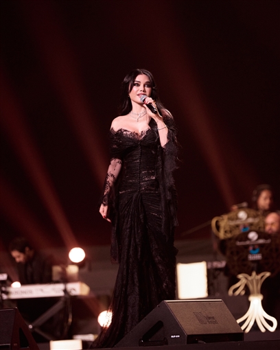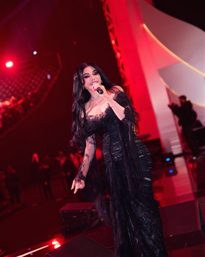 بوسي تخطف الأنظار بجامبسوت أحمر في حفلها الغنائي ليلة رأس السنة