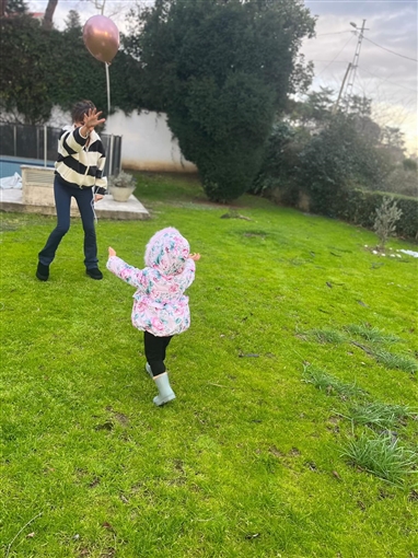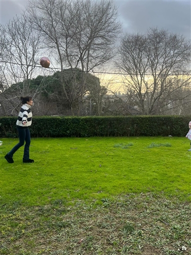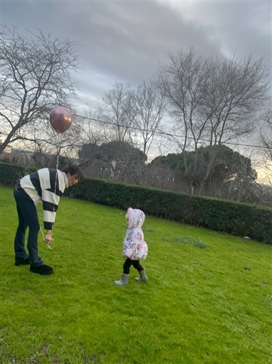 وظهرت في صور أخرى وهي تلعب مع ابنتها في الحديقة وتمسك ببالونة.