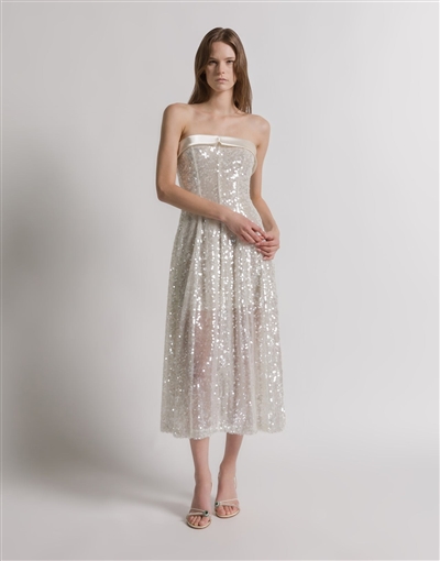 وأطلت ريهام حجاج بفستان أبيض لامع متوسط الطول، مكشوف الكتفين، ببطانة حتى أسفل الركبة ثم يستكمل القماش شفافا.