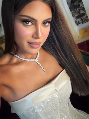 نيكول سابا بفستان بني بكورسيه جلد في لقائها ليلة رأس السنة ... سعره 37 ألف جنيها