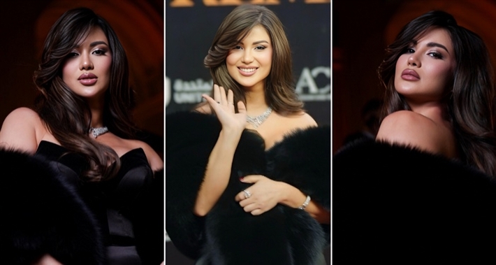 وتألقت هدى الاتربي على السجادة الحمراء للحفل بفستان أسود فخم وأنيق