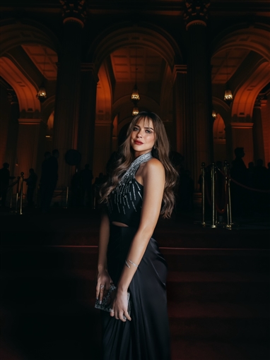 أمينة خليل تتألق بإطلالة كاملة من فالنتينو في حفل إطلاق أحد المشاريع العقارية الكبرى بالإمارات