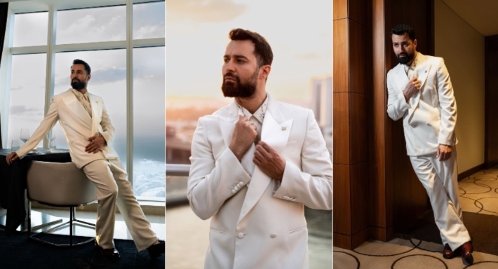 ولفت أحمد حاتم الأنظار في جلسة تصوير بإطلالته في تلك الفعالية، حيث تألق ببذلة بيضاء أنيقة حصدت إعجاب متابعيه.
