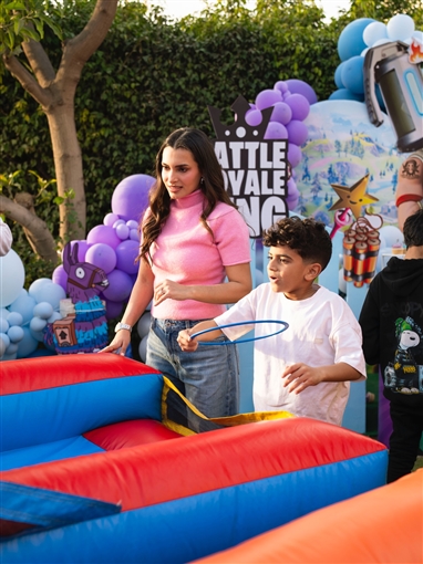 وظهرت كارمن سليمان تلعب مع ابنها بعض الألعاب الموجودة ضمن الاحتفال بعيد ميلاده.