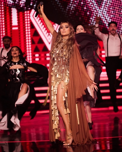 مايا دياب بفستان ذهبي قصير في إطلالتها الثانية على مسرح برنامج "يلا نِدبُك"