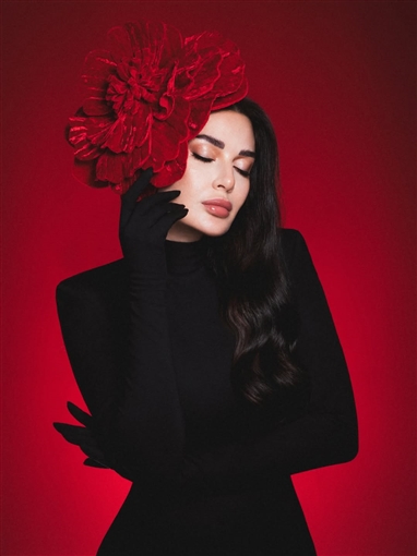 نسرين طافش بفستان أحمر من القطيفة في جلسة تصوير احتفالا بعيد الحب وعيد ميلادها