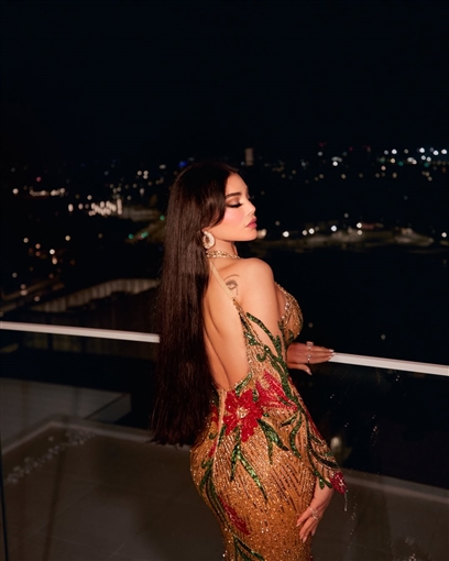 وأطلت هيفاء وهبي على جمهورها فستان ذهبي خطف الأنظار، مزين برسوم نباتية بالأحمر والأخضر.