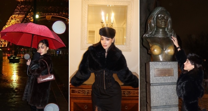 ظهرت بسمة بوسيل في صور تقف أمام برج إيفل، وفي صور أخرى تزور تمثال داليدا الموجود هناك