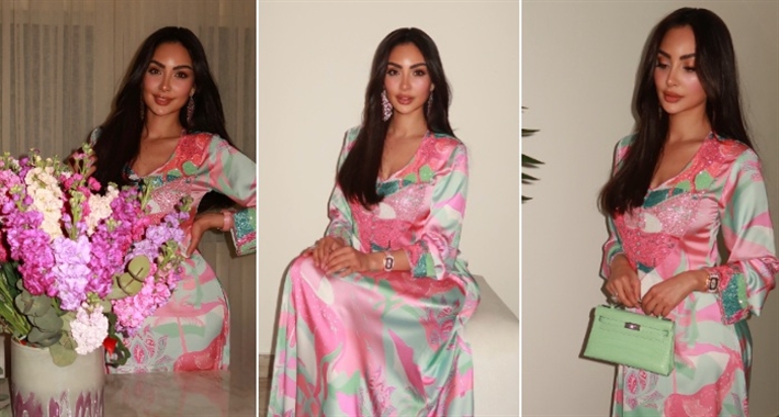 #شرطة_الموضة: بسمة بوسيل بقفطان من الستان وحزام من schiaparelli سعره 141 ألف جنيه في سحور بدبي