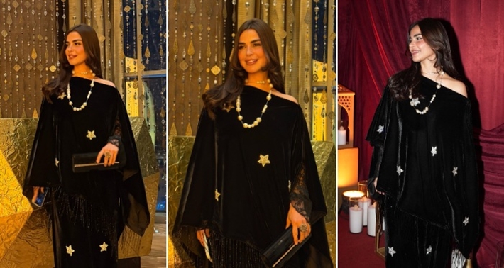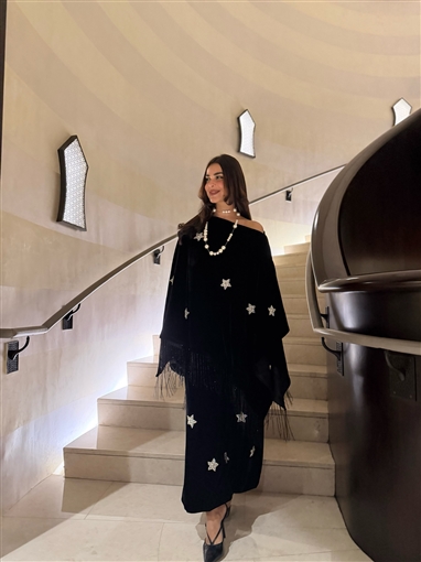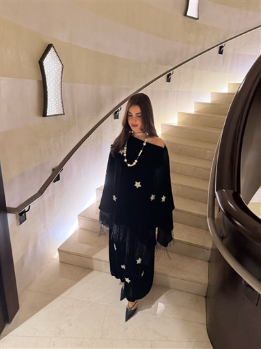 والإطلالة مطرزة بشكل نجوم