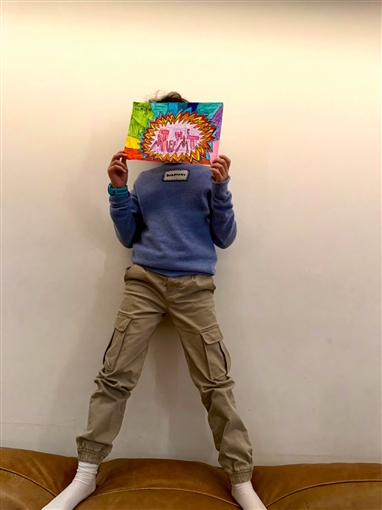 وظهرت في الصور تمسك بررسومات رسمها ابنيها لها عبروا فيها عن حبهما الكبير لها.