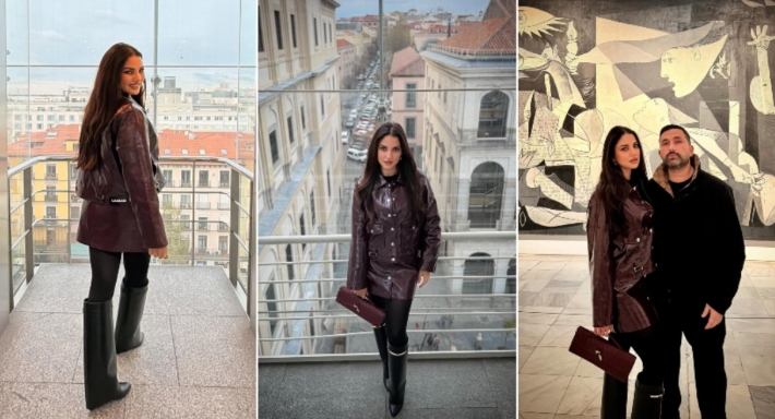 وظهرت درة في الصور وهي تستمتع بمعالم مدينة مدريد، وبعض معارض اللوحات الفنية.
