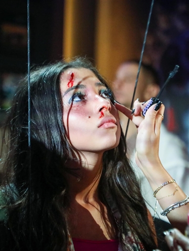 جيسيكا حسام الدين مع مكياج يضهر كدمات في وجهها