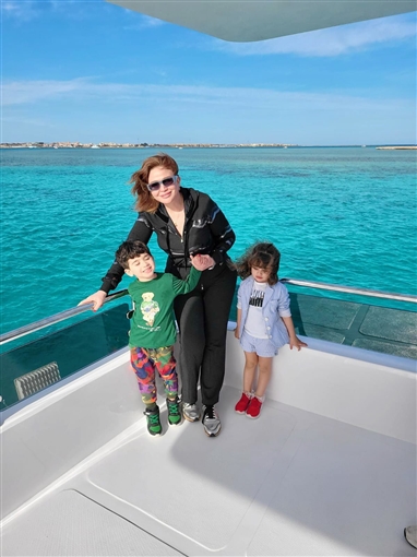 سافرت إلهام شاهين برفقة شقيقها أمير وزوجته وأبنائه "مراد ومريم".