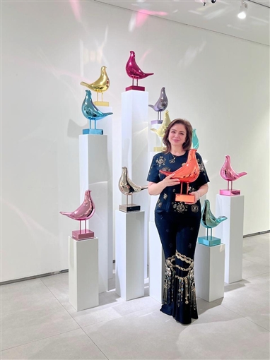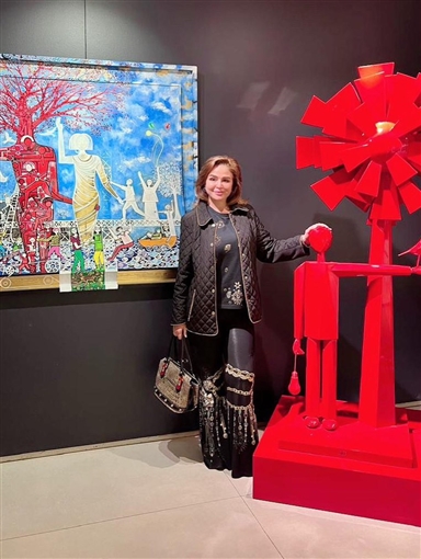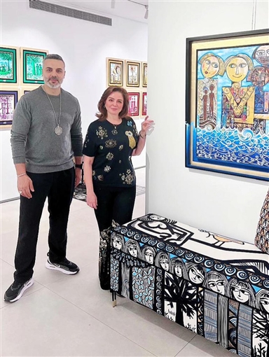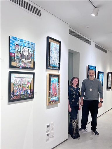 زارت الفنانة إلهام شاهين معرض الفنان التشكيلي والنحات أحمد فريد.