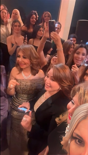 رقص لميس الحديدي وليلى علوي وإلهام شاهين وبوسي شلبي في حفل خطوبة نجل لميس وعمرو أديب