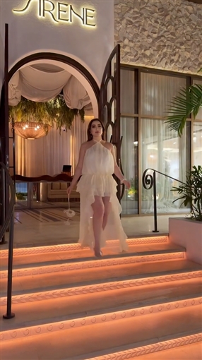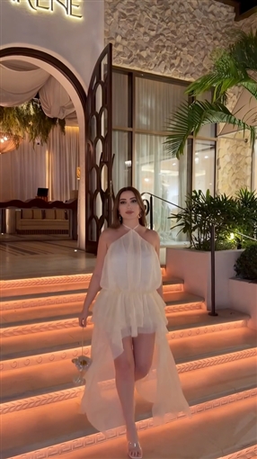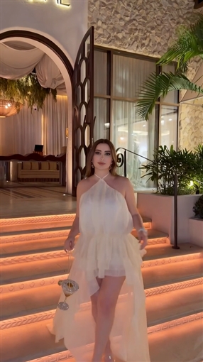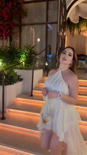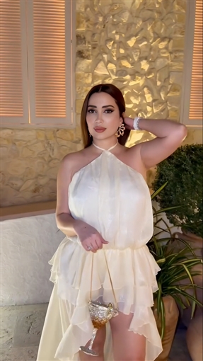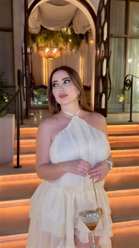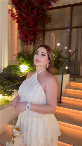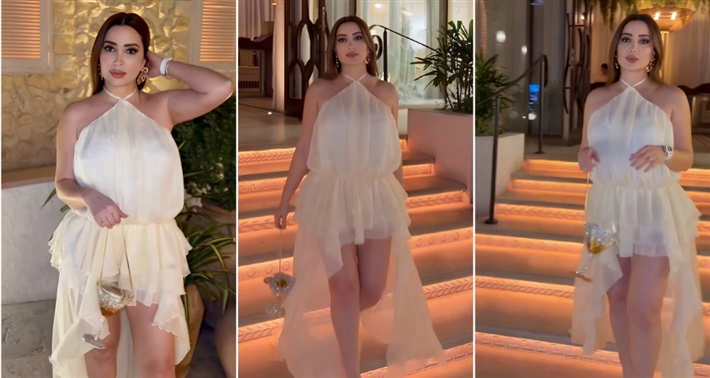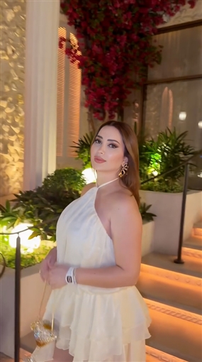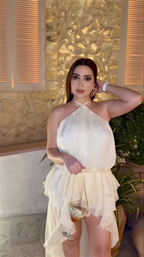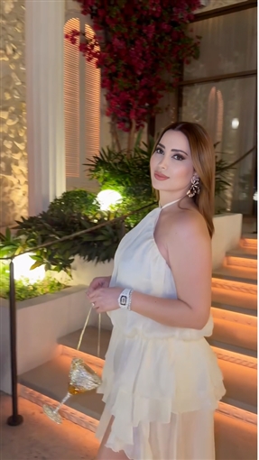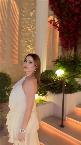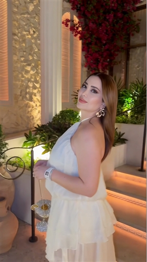 ظهرت نسرين طافش تخرج من مكان وتستعرض إطلالتها التي اختارت لها اللون الأبيض.