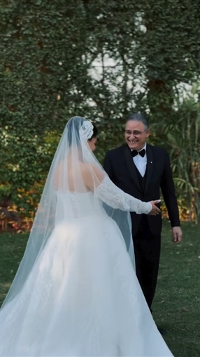 ولم يتمالك أشرف طلبه دمعوه ما أن رأى ابنته بفستان الزفاف، فقد قام بمشاهدتها في "الفريست لوك" وهي العادة التي يفعلها العريس لكن هذه المرة فعلها "طلبة" مع ابنته.
