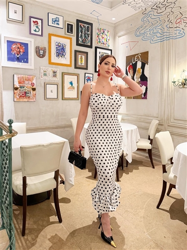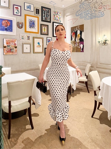نسرين طافش تخطف الأنظار بفستان بولكا دوتس وإطلالة جديدة من دبي