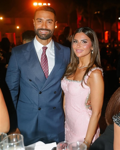 ملك أحمد زاهر بفستان ستان يظهر رشاقتها في أحدث ظهور مع خطيبها شريف عمرو الليثي