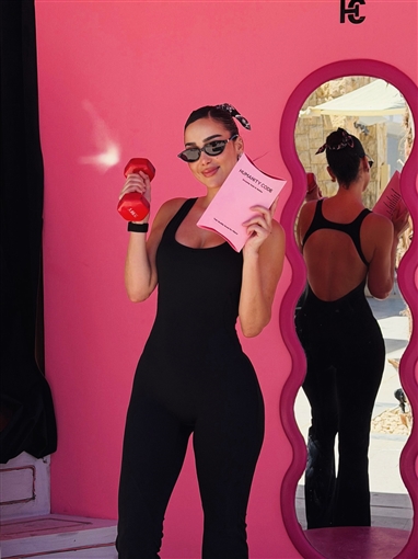 نسرين طافش تبدأ إطلالات صيف 2026 بفستان أبيض قصير وحقيبة مميزة على شكل كأس في أحدث ظهور بدبي