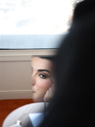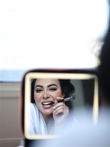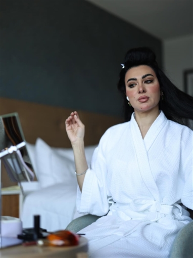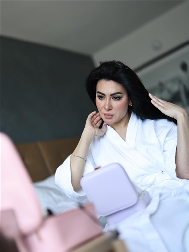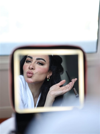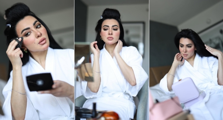 وظهرت ميرهان حسين في الصور أثناء عمل المكياج، حيث داعبت الكاميرا من خلال المرآة بتعبيرات طريفة.