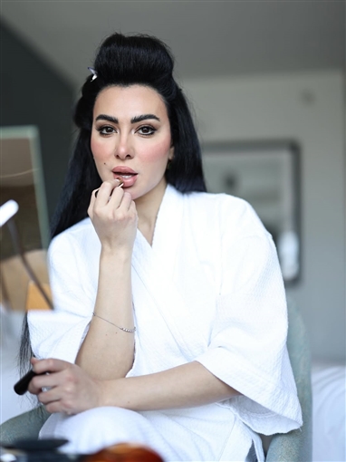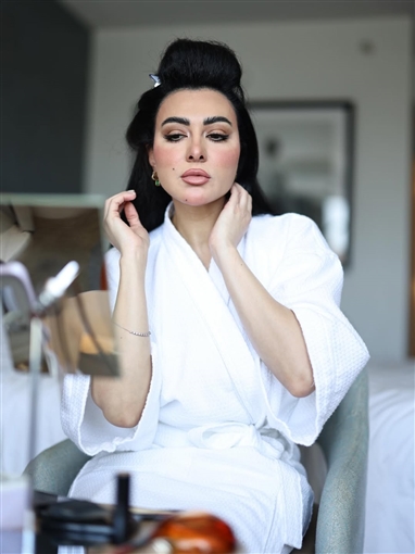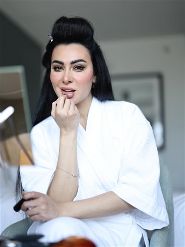 ميرهان حسين تداعب الكاميرا في جلسة تصوير من كواليس حفل افتتاح مهرجان هوليوود للفيلم العربي