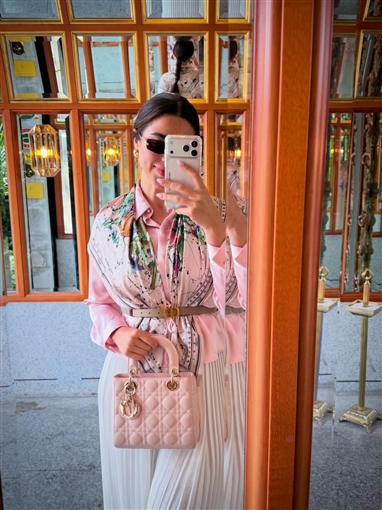وأظهرت الصور إعجابها بطبيعة المكان الساحرة، حيث حرصت على توثيق جمال الأجواء المحيطة بعدستها من جبال وأزهار وغيرها.