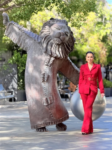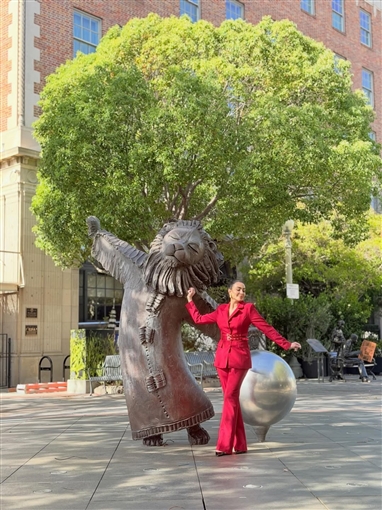 ميرهان حسين تداعب الكاميرا في جلسة تصوير من كواليس حفل افتتاح مهرجان هوليوود للفيلم العربي
