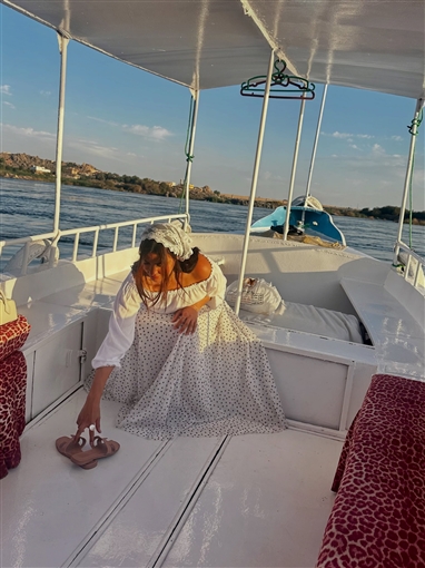 ظهرت رانيا منصور في رحلة نيلية تستمتع بالأجواء الربيعية.