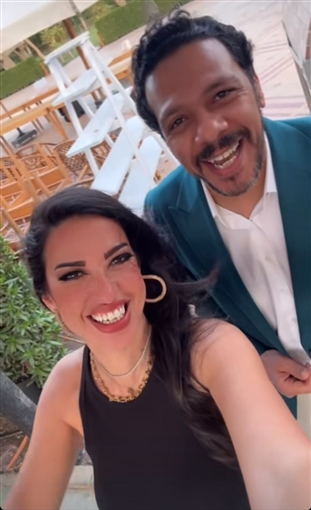 أسماء أبو اليزيد وزوجها يستمعان بالأجواء الصيفية في "تايمز سكوير"