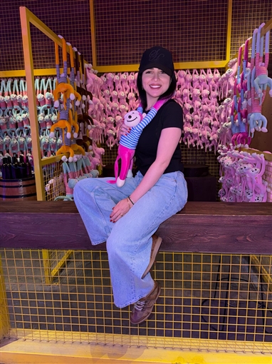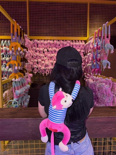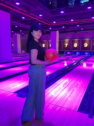 وظهرت وهي تمسك بدمية وتلعب بلياردو وبولينج.