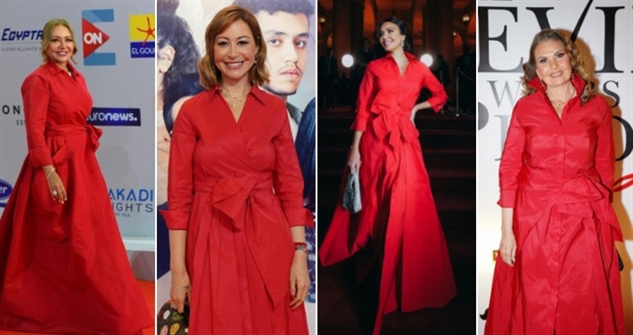 أربع نجمات بنفس الفستان ... يسرا وأمل بوشوشة ومنة شلبي وليلى علوي بفستان من Carolina Herrera