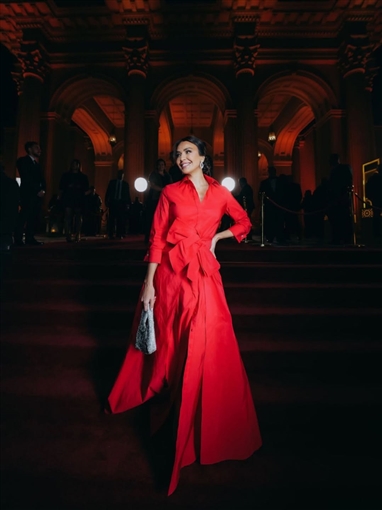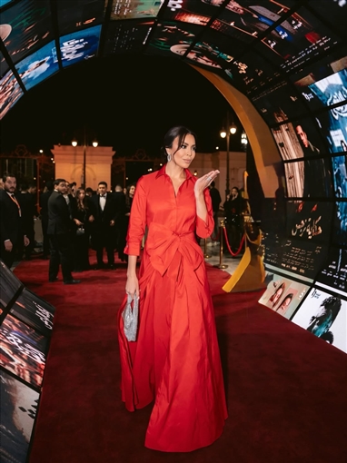 أطلت النجمة يسرا في العرض الخاص لفيلم The Devil Wears Prada بفستان أحمر أنيق من تصميم كارولينا هريرا Carolina Herrera.