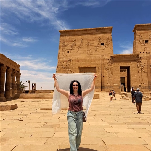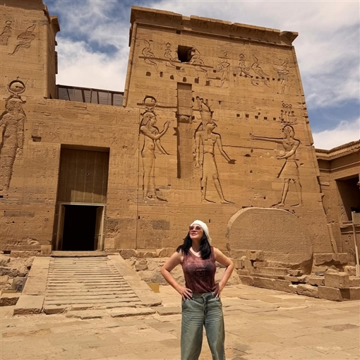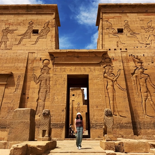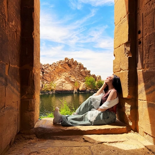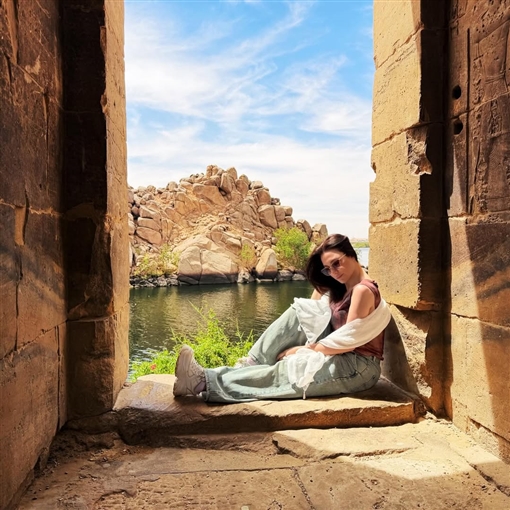 وظهرت سلاف فواخرجي في الصور خلال زيارتها أماكن متنوعة بين الأماكن الأثرية، والنيل، وحرصت على توثيق تلك اللحظات، وكتبت في التعليق عليها: "في بلاد السحر والجمال".