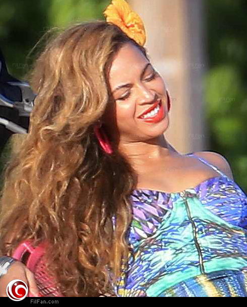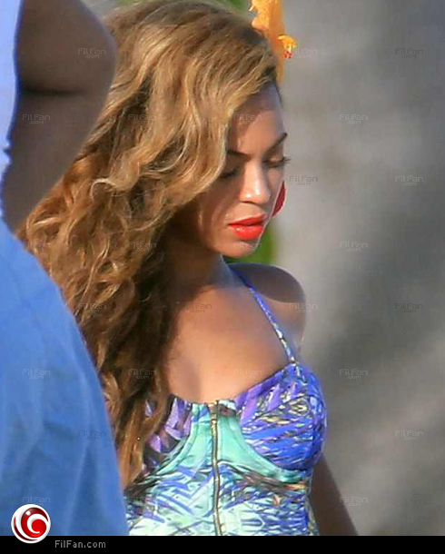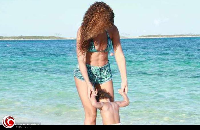 تقضي بيونسيه وابنتها اجازة على أحد شواطىء جزر البهاما.