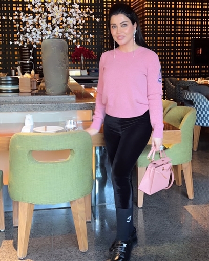 جومانا مراد ارتدت بلوفر وردي وبنطلون أسود