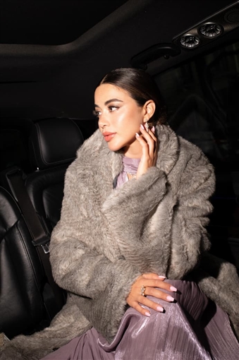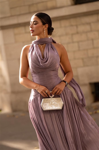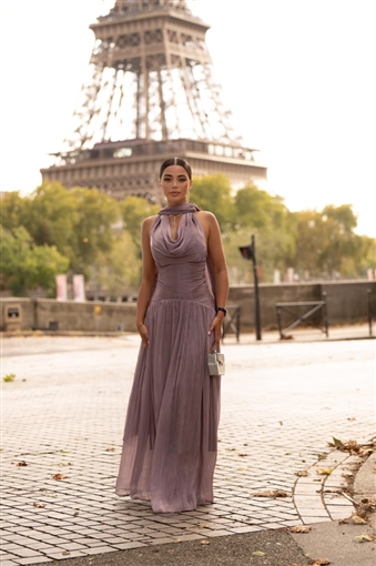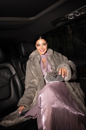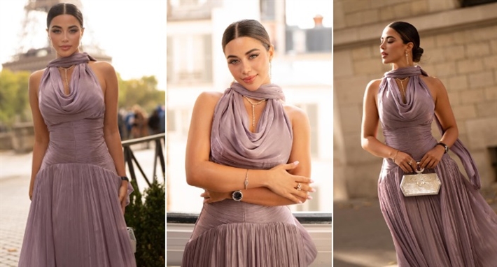 يارا السكري بفستان لافندر أنيق في عرض إيلي صعب بأسبوع الموضة في باريس