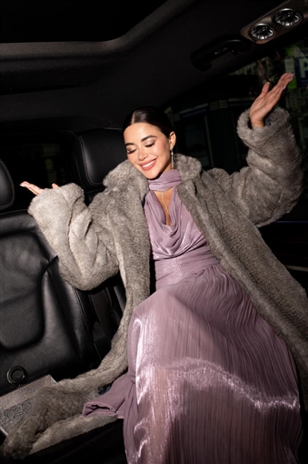 ظهرت يارا السكري خلال العرض بفستان ملكي باللون الخزامي تميز بتصميمه الناعم والبسيط، فيما أضفى المكياج الهادئ مزيداً من الجمال والرقة على ملامحها، لتجسد مزيجاً متناغماً بين الأناقة العالمية والجمال العربي الأصيل، ما جعلها محط أنظار الحاضرين وعدسات المصورين.