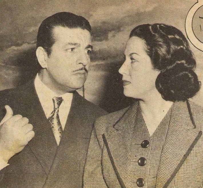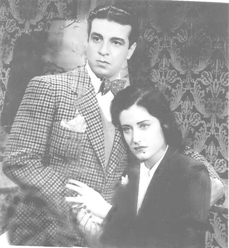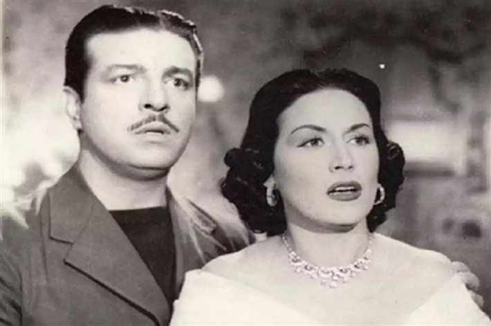 والثالثة من الفنانة ليلى مراد وشكلا سويا واحدا من أشهر ثنائيات السينما المصرية