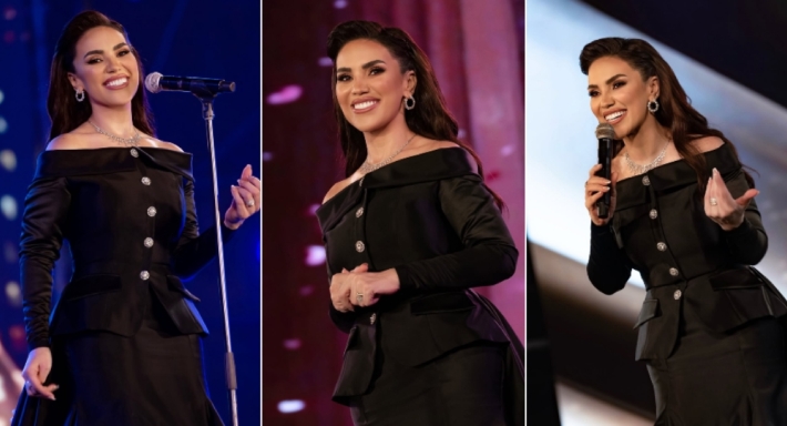 أطلت مي فاروق على جمهورها في الحفل بفستان أسود أبرز أناقتها، مع تصفيفة شعر ومكياج أبرزا ملامح وجهها، وحصدت إطلالتها إشادات متابعيها.