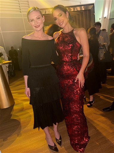 وظهر في الصور بسنت شوقي وزوجها محمد فراج وهما يلقتيان بنجوم عالميين متواجدين في الحفل مثل كريستين دانست وريز أحمد.