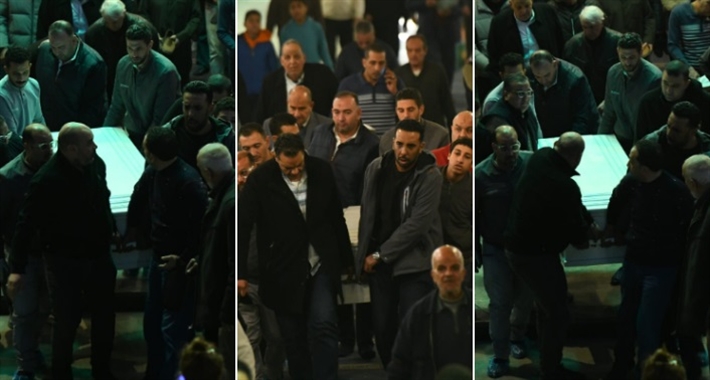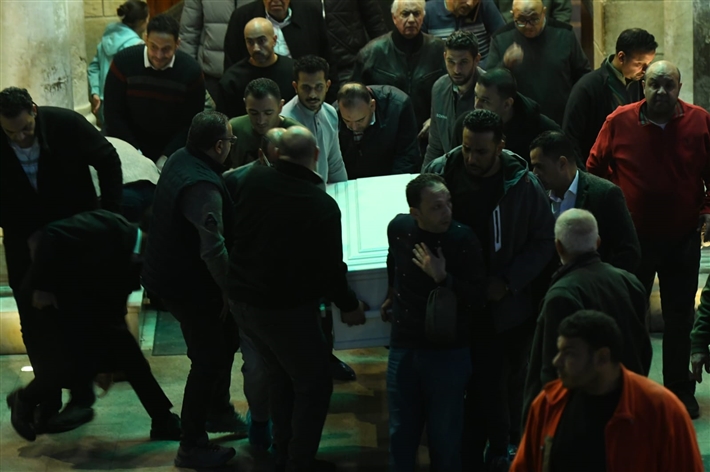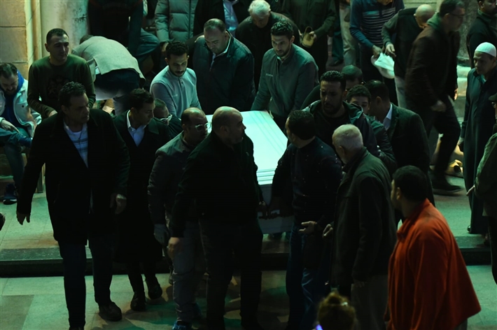 أحمد السعدني وكريم محمود عبد العزيز وعلي ربيع وشيرين وأحمد السبكي في عزاء شقيقة عادل إمام